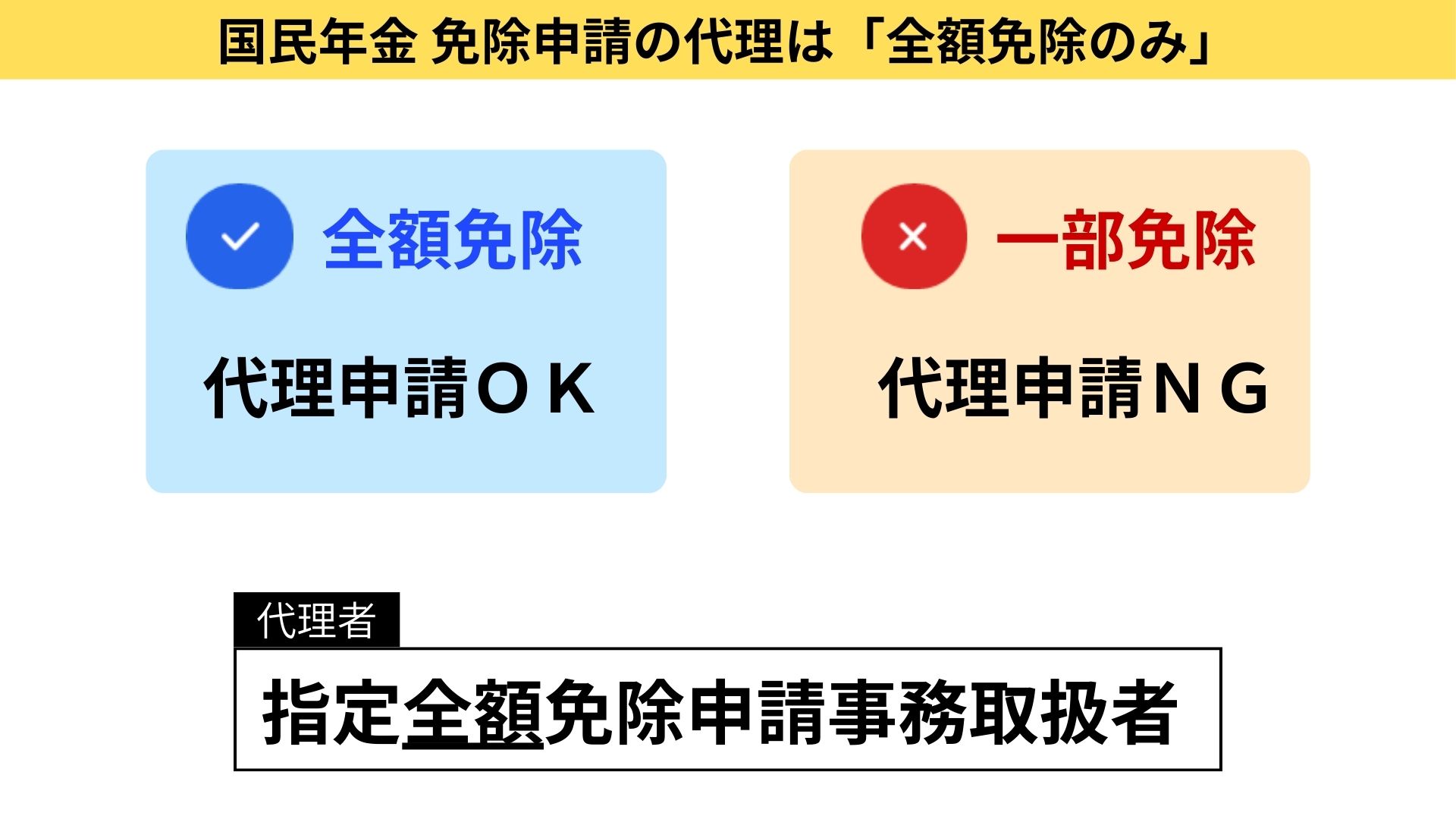 免除申請の事務手続きを代行してもらえるのは「全額免除者」だけです。