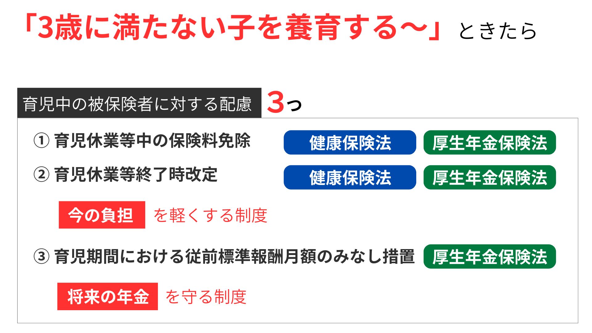 「3歳に満たない子を養育する~」が出たらまず思い出す3点