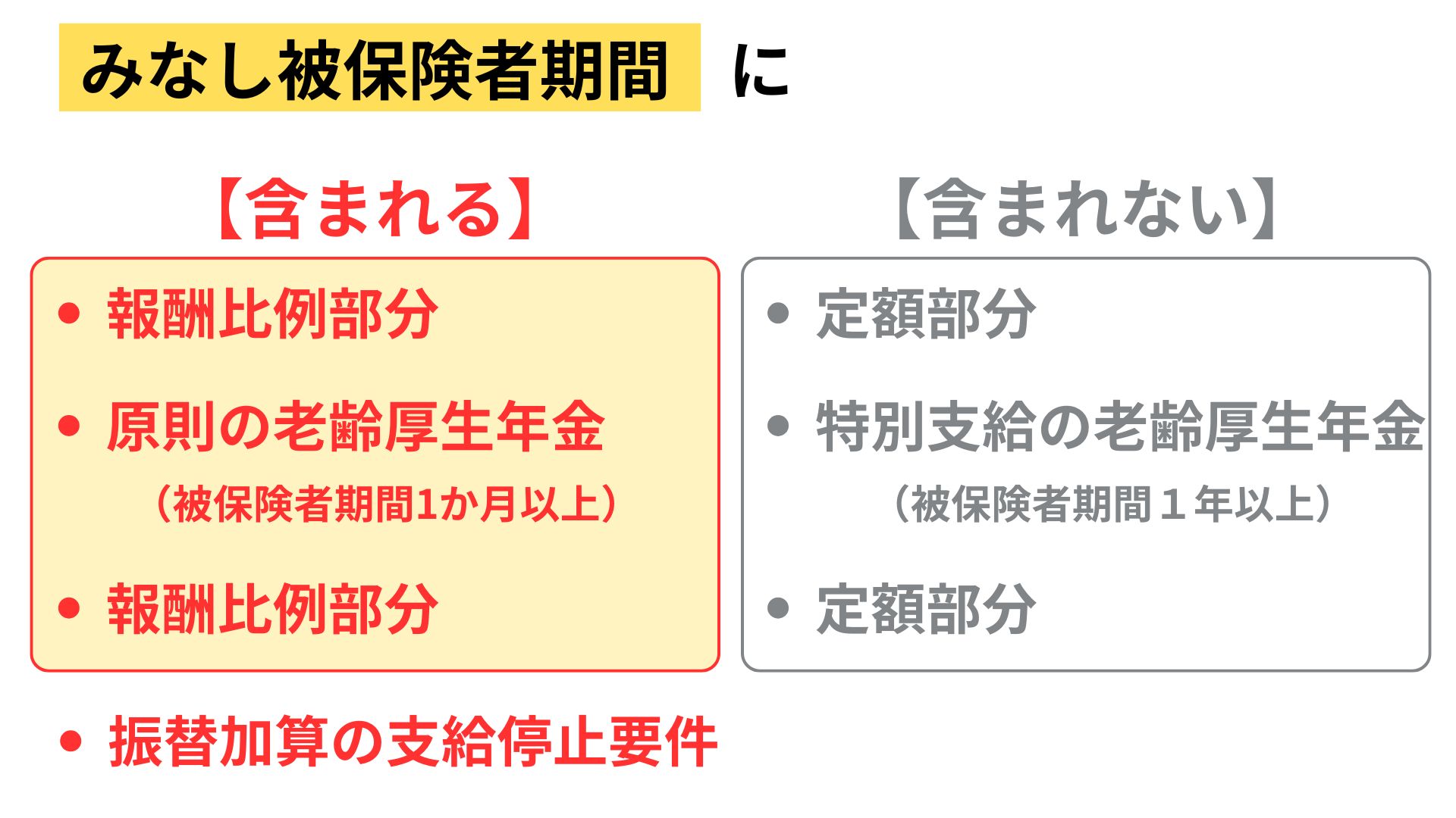 ポイントは、みなし被保険者期間を計算の基礎に「含まれる」ケースだけを覚えることです。