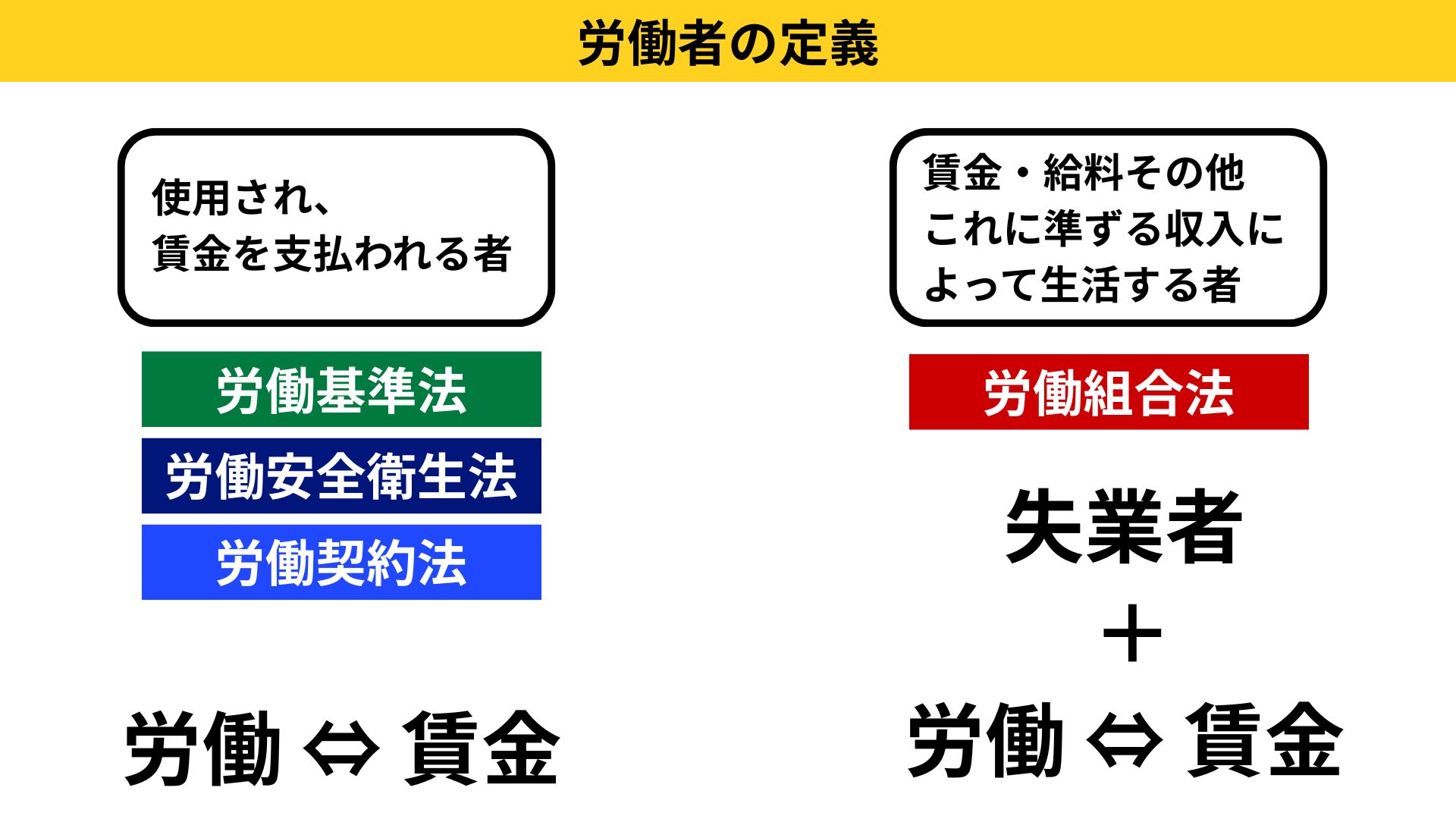 労働組合法 → 生活の糧が賃金ベースならOK(失業者も含む)