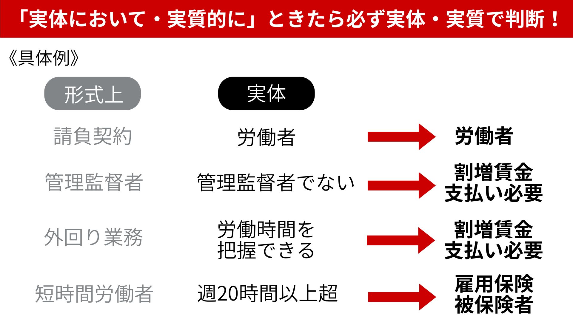 形式上は請負契約のようなかたちをとっていても、その実体において使用従属関係が認められるときは、当該関係は労働関係であり、当該請負人は労働者にあたる。