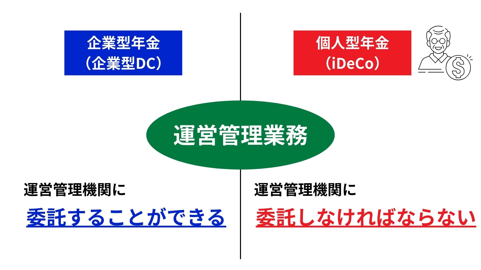 確定拠出年金法において、運営管理業務に関しての取扱いは、「企業型年金」と「個人型年金」で異なります。