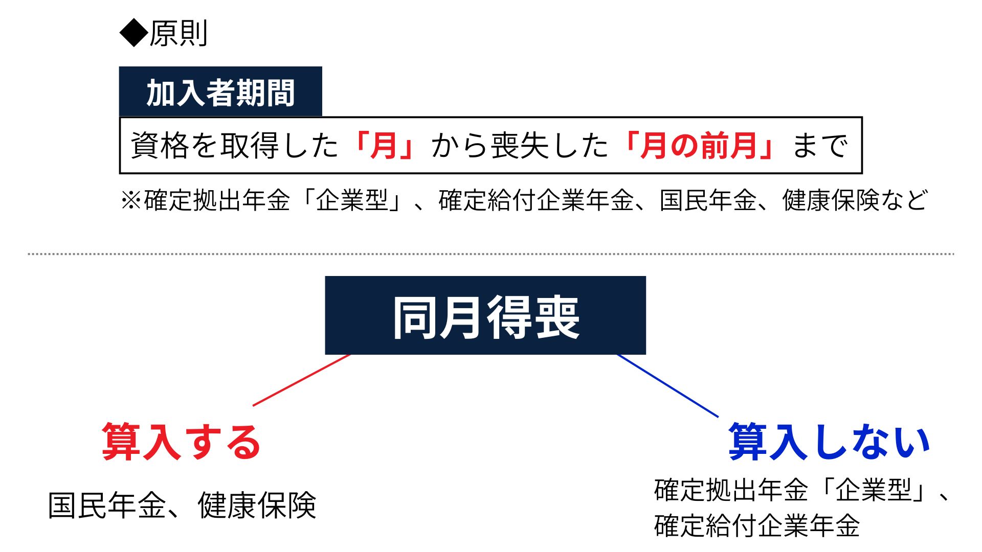 同月得喪の場合は、他の社会保険とは異なると覚えておきましょう。