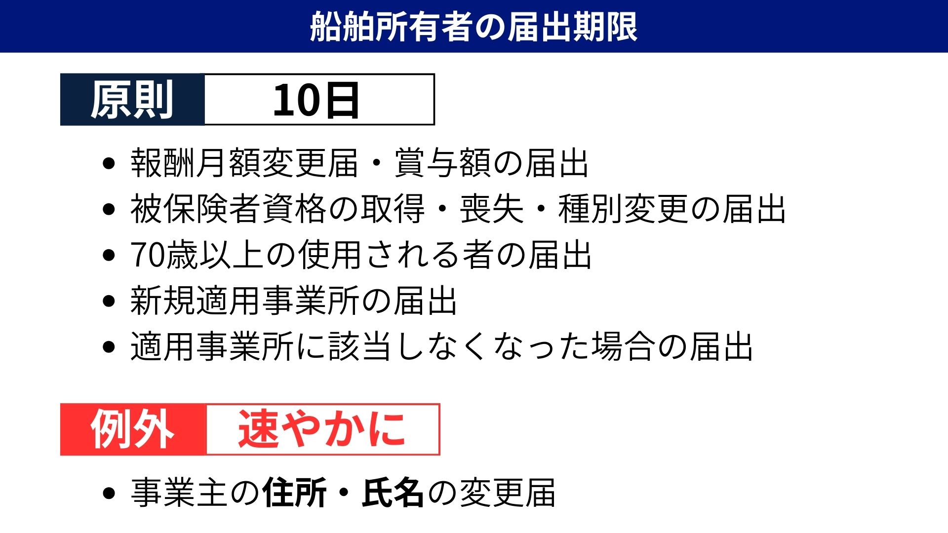 船舶所有者は、その住所に変更があったときは、10日以内に、所定の届書を日本年金機構に提出しなければならない。