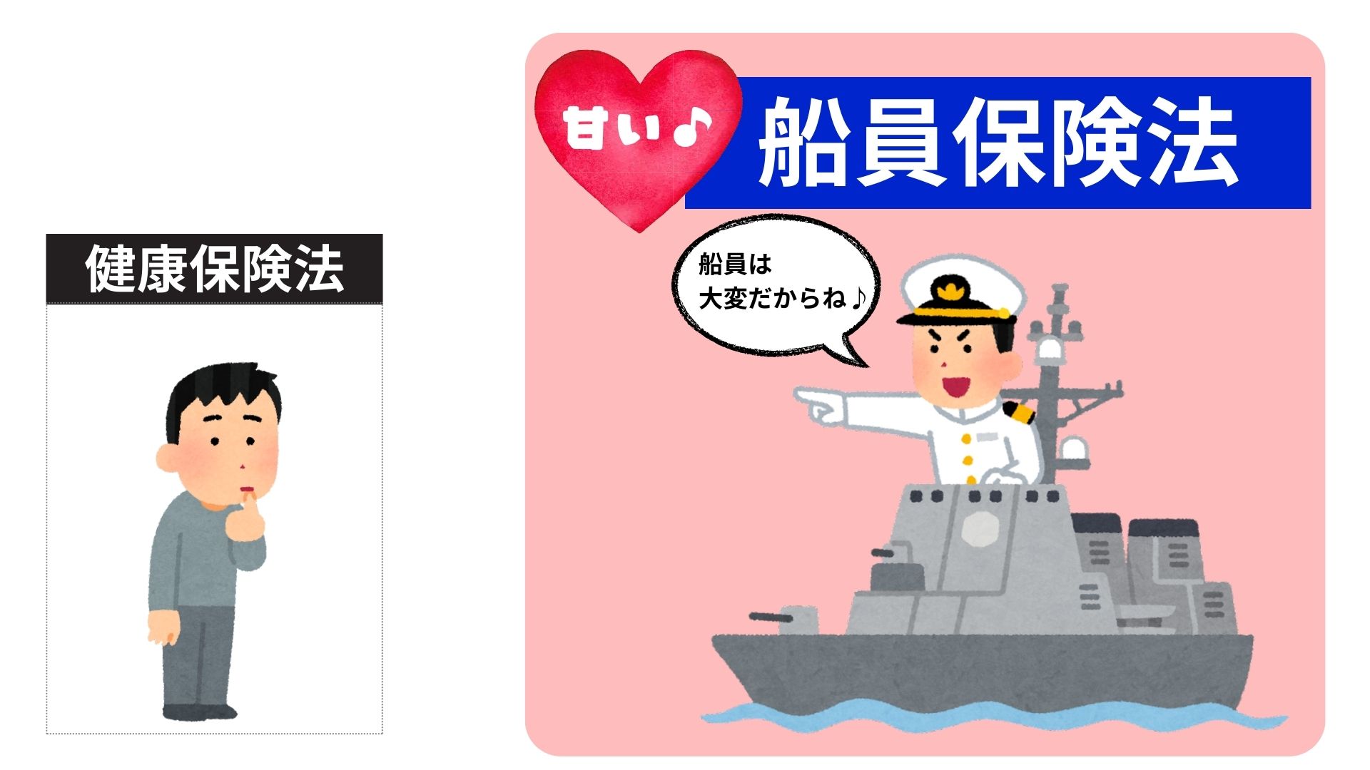 前回、船員保険法は健康保険法に比べて甘いと説明しました。